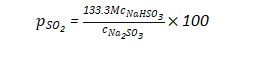 Na2SO3-NaHSO3液面上SO2的分壓值,可用以下公式計算: